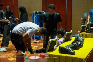 Kesemua mereka menerima barangan kelengkapan sekolah seperti baju, beg dan kasut sekolah.