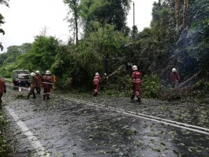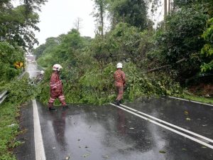 ” Pihak bomba bertindak memotong batang dan dahan pokok yang tumbang itu bagi membolehkan jalan itu boleh dilalui semula oleh pengguna jalan terbabit,” katanya.