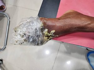 Dr Hanafi berkata tindakan warga emas itu bukannya boleh menyembuh sakit yang dialaminya, malah menyebabkan jangkitan kuman lebih teruk dan semakin merebak kerana permukaan kaki telah menjadi lembab setelah disapu dengan campuran pelik serta dibalut dengan plastik itu.