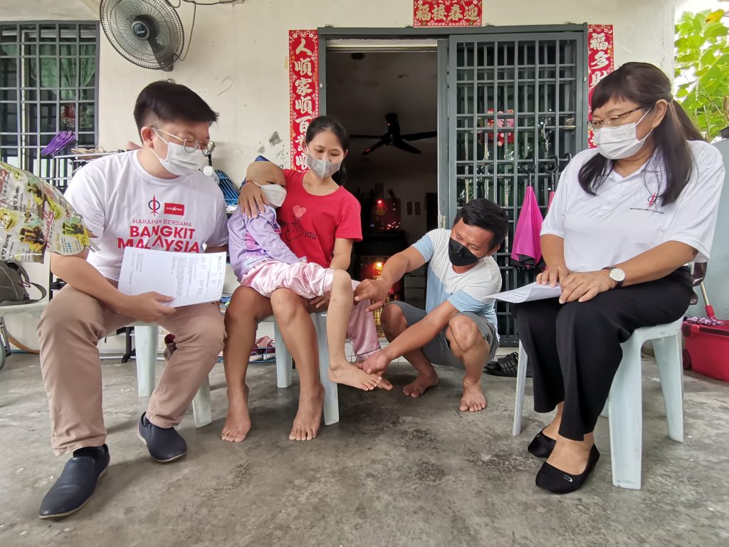 Winnie dipangku ibunya, Sook Kuan ketika ketika lawatan ADUN Menglembu, Steven Chaw Kam Foon (kiri) di rumahnya di Taman Kledang, Menglembu pada Jumaat.
