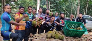 Peserta kayuhan menikmati durian dengan dikelilingi keindahan alam flora dan fauna Banjaran Titiwangsa di salah sebuah dusun dekat Behrang Ulu, dekat sini.