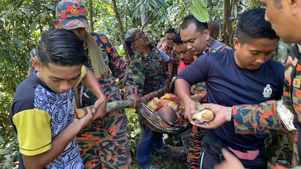 Jabatan Bomba dan Penyelamat Malaysia (JBPM) Perak berkata, anggota bomba menggunakan pengusung bagi mengeluarkan mangsa dari kawasan tersebut.