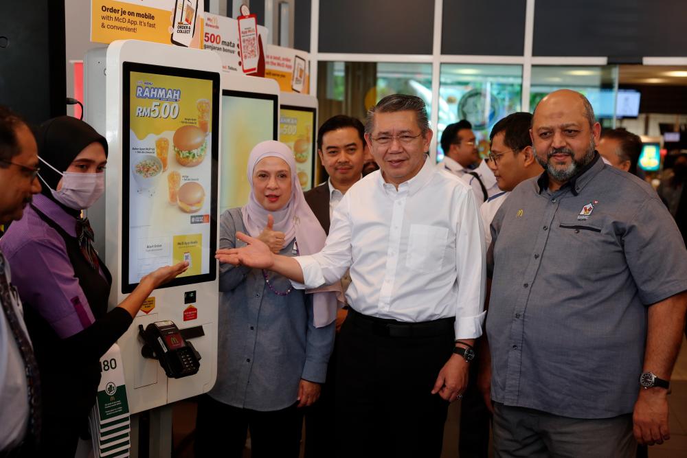 Menteri Perdagangan Dalam Negeri dan Kos Sara Hidup Datuk Seri Salahuddin Ayub (dua, kanan) dan Naib Presiden dan Ketua Pegawai Pemasaran McDonald’s Malaysia Melati Abdul Hai ketika pelancaran Menu Rahmah sebagai komitmen membantu rakyat Malaysia di McDonald’s Mutiara Damansara hari ini. Foto BERNAMA