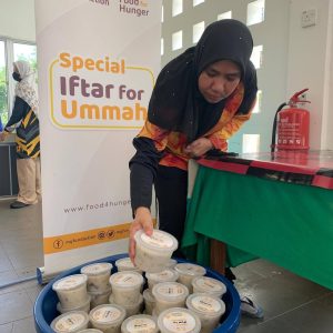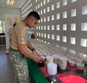 Lumut -Warga TLDM Lumut dan MyFundAction Perak di bawah Program Special Iftar For Ummah (SIFU) bekerjasama secara bergotong-royong memasak serta mengagihkan 600 pek bubur lambuk telah berjaya diedarkan di Masjid An-Nur, Pangkalan TLDM Lumut.