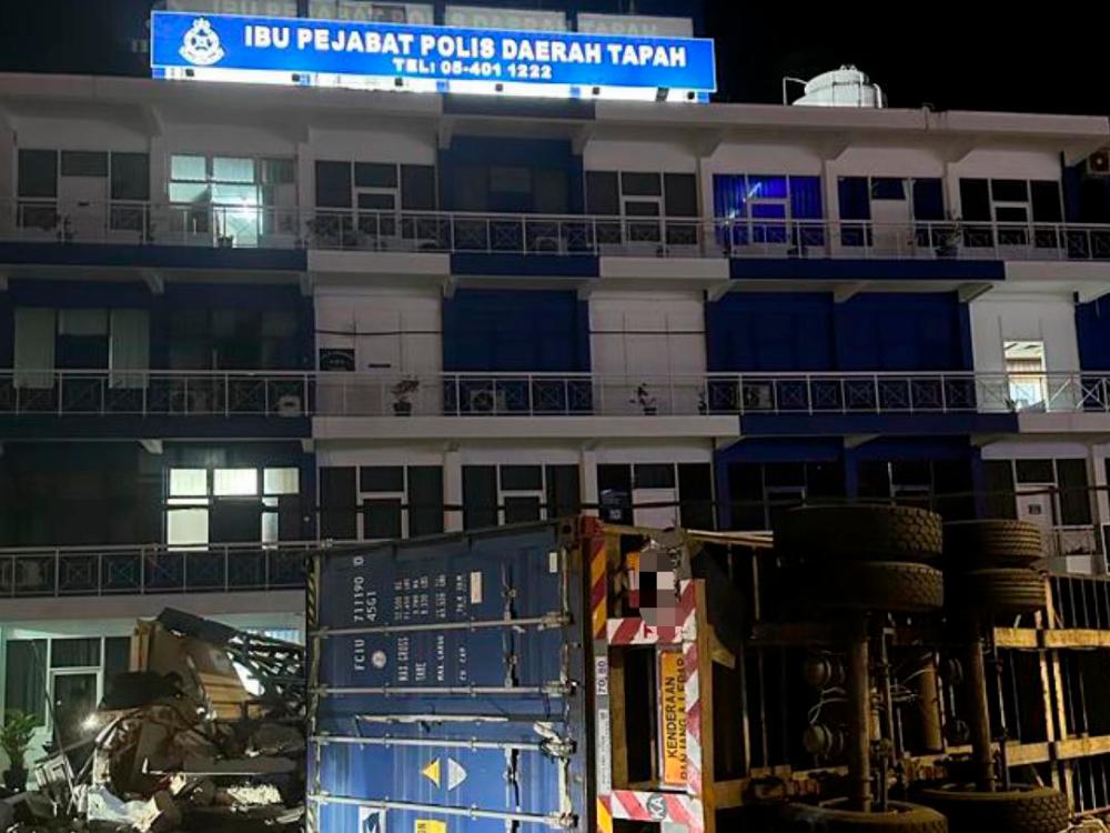 Pemandu lori kontena rempuh pagar, pos pengawal IPD Tapah ditahan polis
