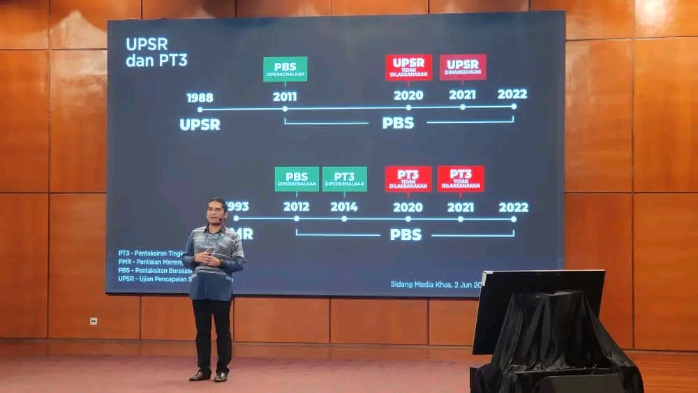 “Sewaktu sebelum pandemik, PT3 adalah dilaksanakan di sekolah di mana guru-guru menjana soalan-untuk murid-murid mereka dan peperiksaan dilaksana di di bawah kawalan sekolah, dan hari ini (KPM) membuat keputusan bahawa PT3 akan dimansuhkan mulai tahun ini,” katanya dalam sidang media tersebut, di sini.