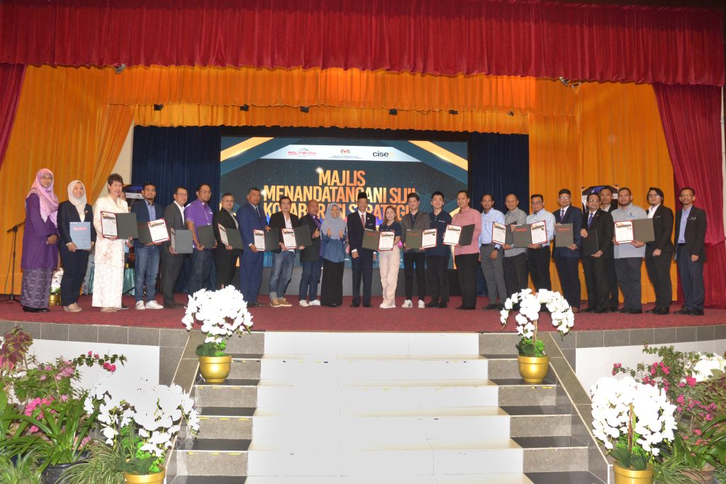 Agensi, industri yang menandatangani Sijil Kolaborasi Strategik di Dewan Jubli Perak, PUO pada Khamis. - Foto PUO