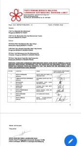 Surat bertarikh 31 Mei 2020 itu ditulis oleh Ketua Cawangan Seri Manjung, Mohd Isnin Ismail dan turut ditandatangani oleh Timbalan Ketua Cawangan, Bendahari, Setiausaha, Ketua Penerangan, Ketua Armada dan Srikandi.